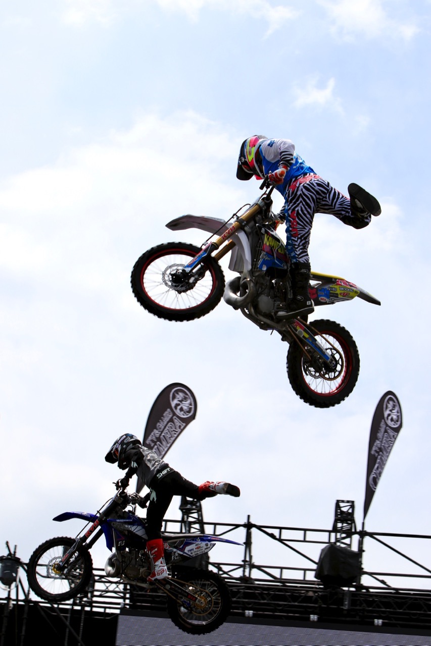 ダートスポーツ8月号(6/24発売)では、参加した全ライダーのインタビューをしてきましたが、近年のコンペティテブな超過激トリックを追いかけるだけが全てではなく、時にこういうオールドスクールな技も観客を喜ばせてくれるわけです。現在のFMXの先端をいく彼らの声をお届けしますので、お楽しみに。