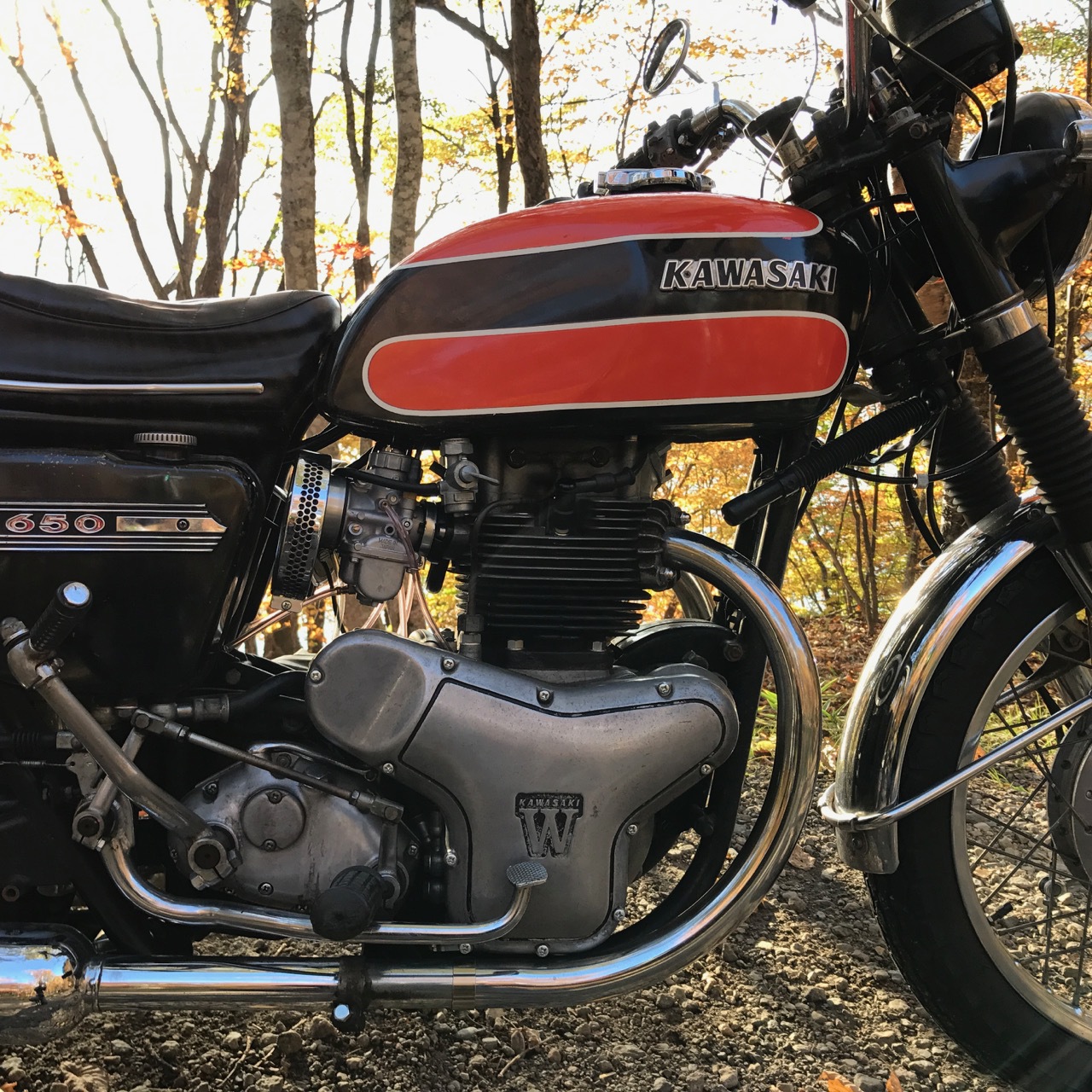 バーチカルツインエンジン搭載、KAWASAKI W1SA(1971)です。