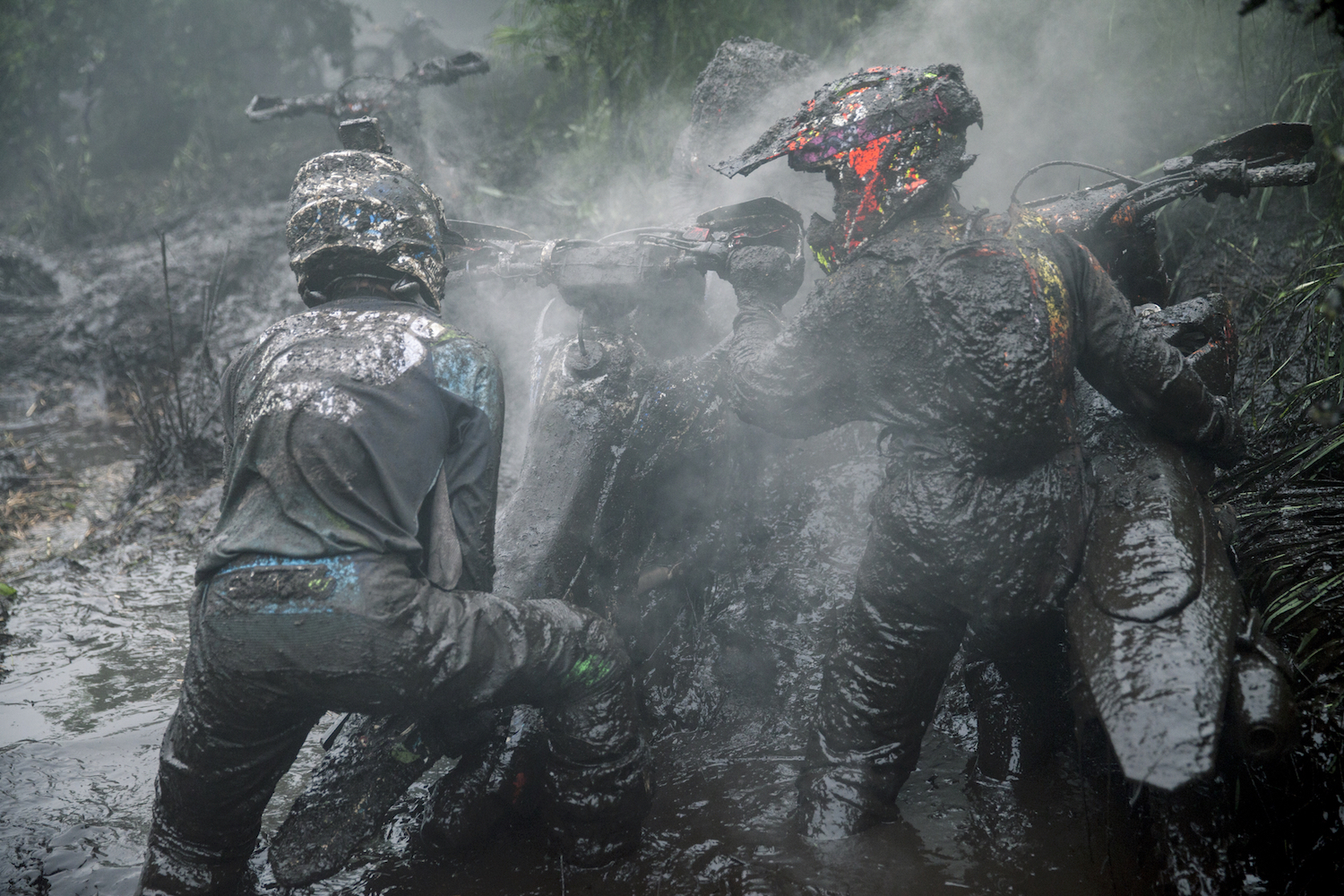 2014年のJEC。すでに広島を舐めてはかかれないと腹をくくりました。なんとしてでもリベンジしたく、後輪にIrcのツーリストを履いて参戦。速さよりも走破性重視の選択でした。暑さで脱落するライダーが続出する中、なんとか最終ラップに。しかし、暑さで朦朧として、なんでもないところをクリアできず転倒。実は前周にキャメルバッグの水を飲み干していたけど、焦っていて、空のまま突入していました。これが失敗。IAワタライはキャメルバッグを2つ用意していたと、あとで聞きました。