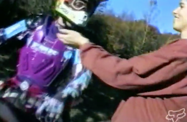 まず自宅で奥さん(美人で有名でしたよね)と別れてから、ヘルカメ担当の友人と自走。ウイリーしたり、線路をまたいで山に登ったり。タイ・デイビス宅で彼を呼ぶと、庭の中でキレッキレの走りを披露するタイ。そのまま連れ立って、再び山へ! マジで憧れました。ダートスポーツの取材でカリフォルニアのオープンエリアでビデオを撮りながら連なって走ったことがあるんですが、真っ先に思い出したのがこの作品でした。