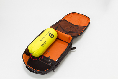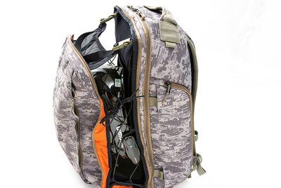 確かにジッパーが開いているように見えるかもしれないですが、実はこれはヘルメットを収納しているのです!