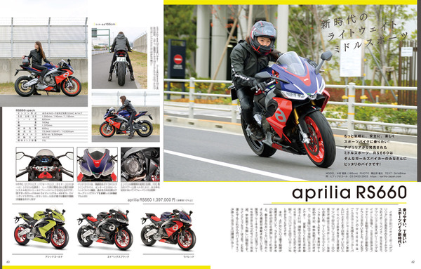 そして表紙は、新時代のライトウェイトミドルスポーツ「aprilia RS660」に木村亜美さんに登場して頂きました!