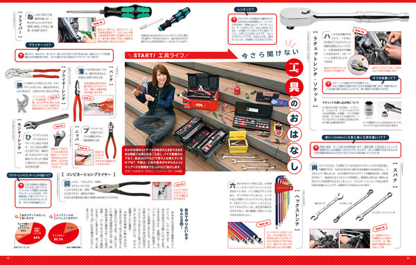 いまさら聞けない工具のおはなしや、やってみたくなるオイル交換などメンテナンス記事も盛りだくさんです。
