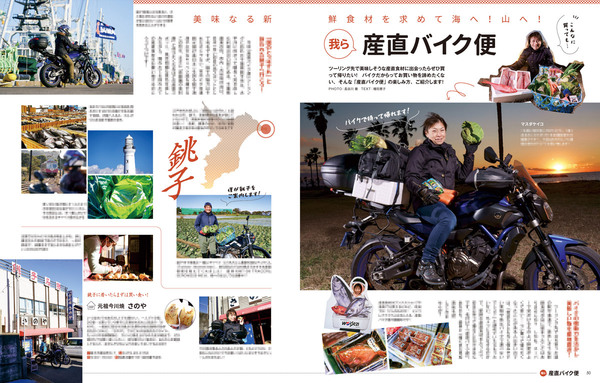 特集は「産直バイク便」で海もの山ものお買い物! 全部バイクに積んじゃえ企画です。