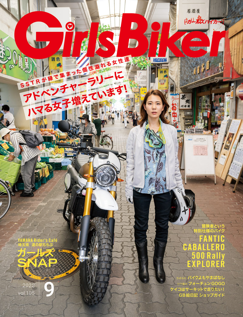 今月の表紙は下町商店街をバックに、FANTIC CABALLERO 500 Rally EXPLORERという最新のバイクを撮影!