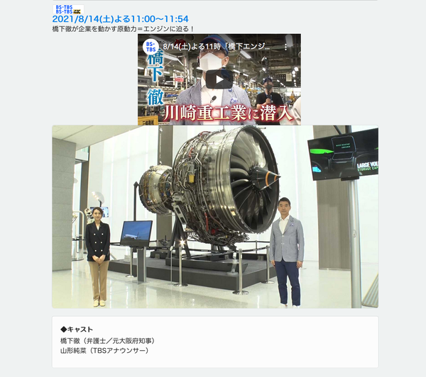 8/14(土)にBS-TBS「橋下エンジン」の番組で、川崎重工業さまが取り上げられています!