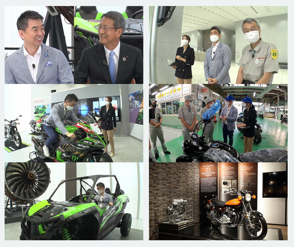 橋下さんの愛車「Z900RS」の開発秘話や、エンジン製造工場や車体組み立て工場も見学。川崎重工業 代表取締役副社長の並木祐之氏とも対談しています。