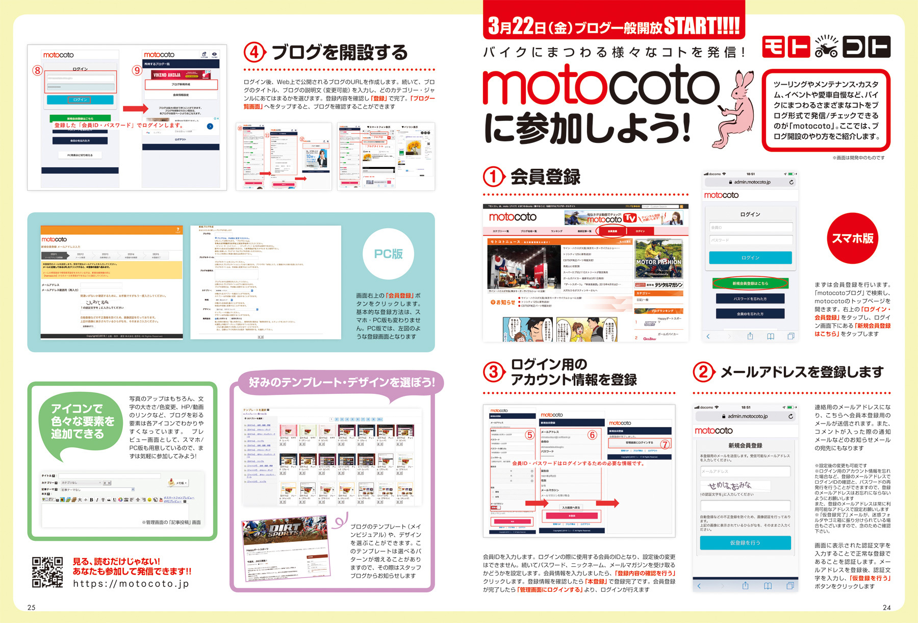 うっすらみなさんも気づき始めてるかもしれないですが、実はこのmotocoto(モトコト)ブログでは、 みなさんもブログが作れます! 作り方はこちらから↓ ※↑クリックで拡大できます 結構気楽にできるのでぜひ登録してみてください\(^o^)/ もちろんお金はかかりません。 バイク好きのみんなが集うモトコトになればいいなぁと思います! わからないことがあればコメント欄で質問くださいね〜!