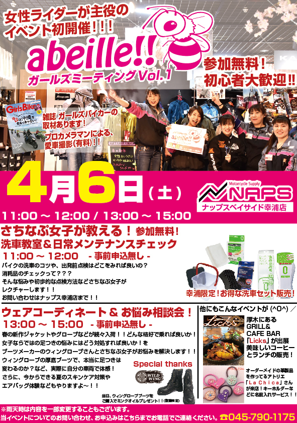 神奈川県にあるナップスベイサイド幸浦店にて、女性バイカーのためのイベントが初開催されるというニュース!