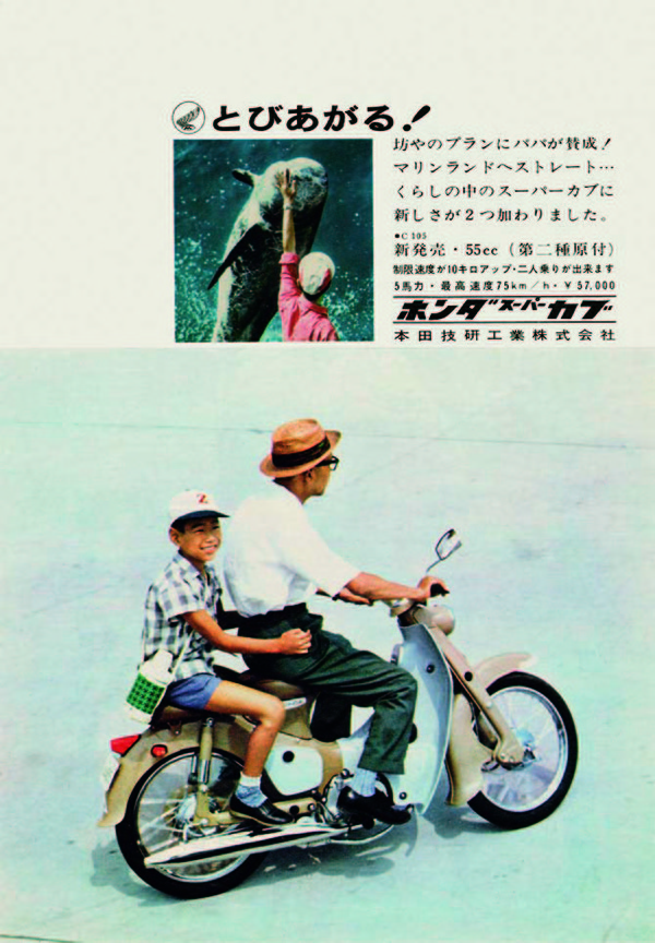 坊やのプランにパパが賛成!マリンランドへストレート…くらしの中のスーパーカブに新しさが2つ加わりました。 ……「とびあがる!」は一番衝撃を受けたキャッチです。インパクトがすごい!