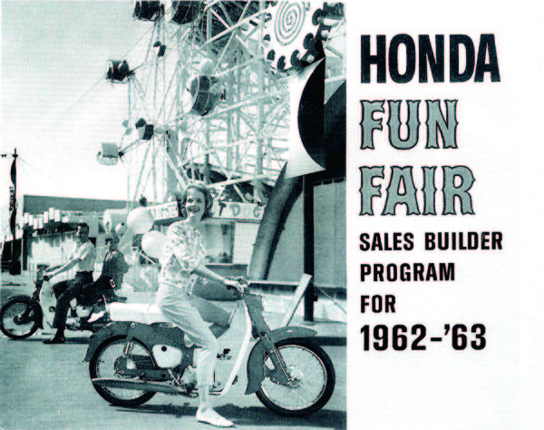 『アソビ心満点の当時の広告』前編part4までは日本国内の週刊誌等に掲載されたカブの広告を見てきましたが、このページではアメリカ向けに作られた デザインです。日本では実用的な切り口でしたが、こちらはビジュアルに凝っていますね。