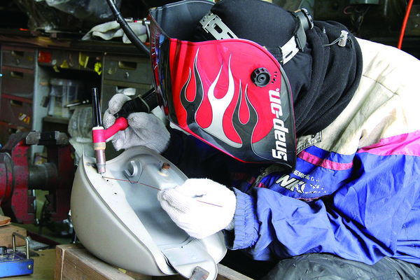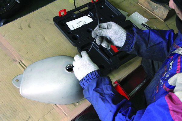 ブラストでピンホールが開いてしまったタンクは溶接で修正してもらいました。価格は2~3個のピンホール修正で\5,000前後で、その他、タンクの状態にもよるので、まずは相談してみましょう