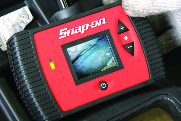 SNAP ONマニアの鈴木さんお気に入り工具、スコープモニターで内部をチェック。少~し錆びもあったり、溶接もしたのであとあとコー