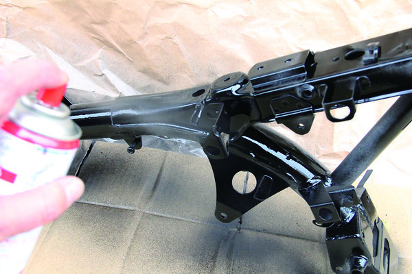 ブラスト後はすぐに錆びてしまうので早速塗装します。サフェーサーを塗り、今回はごまかしのききやすいマットブラックにしました(笑)。今回は何度か重ね塗りで終わりましたが、理想を言えば2液式のウレタンクリアを吹いておくのがベストですね