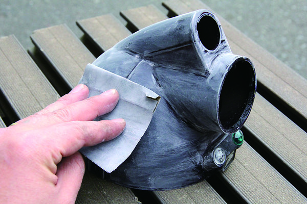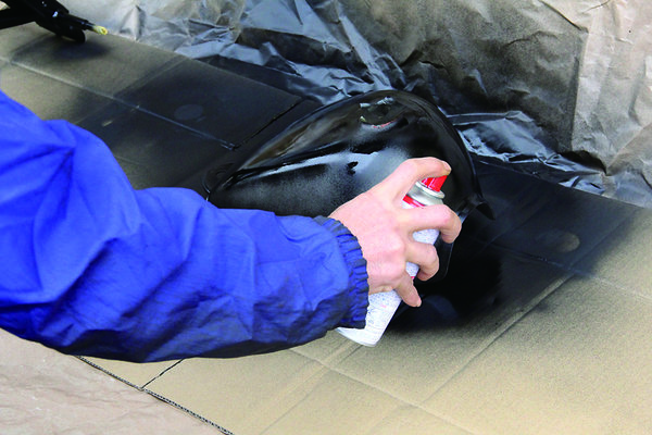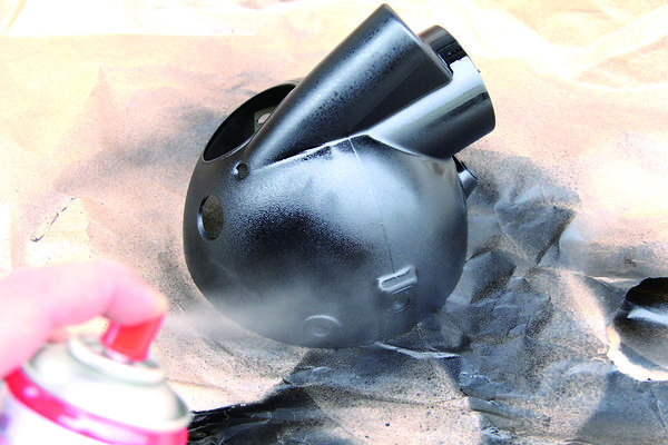 ライトケースはなかなかいい状態だったので600番の紙ヤスリをかけ、PPプライマーを塗った後にタンクと合わせてマットブラックに塗装しました。塗装の前にはワックスオフまたはパーツクリーナーで油分を吹きとっておくのを忘れずに!! 油分は天敵ですヨ