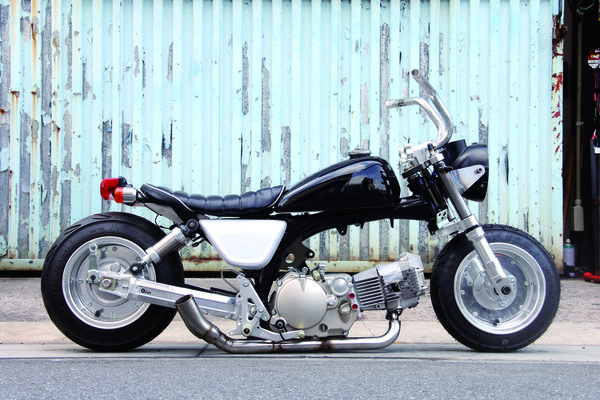 10月の完成を予定して製作中の着地モンキー。今回は先月号で手を加えると言っていた外装に着手。あくまでもモンキーらしく、というショップ、加工屋さん泣かせな難題を受けてくれたのは千葉県にあるPポイントさん。代表の瀬賀さんも初となる5Lタンクのチョップ。しかしセンス抜群の瀬賀さんにかかればこの通り。パッと見はモンキーですが、良く見れば低い! という仕上りに。外装が完成したということで車体の組み込みも開始。タンクに合わせシートも薄く加工(上の写真はまだ仮)。どうするのか!? と思っていたマフラーはなんとダウン!! 超ギリのクリアランスでエキパイを配置するようにワンオフ(フレーム側も少し加工してあります)。なんとかモンキーらしくはなりましたが、ここからがキモ!! どんな姿になるか!? 乞うご期待!!
