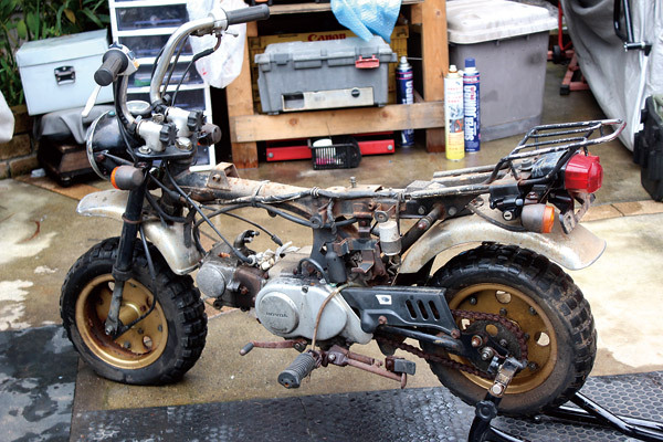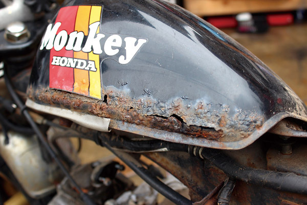 5Lモンキーを貰ってきたのですが、ヤレ具合はそれなりに酷い…。1967年にZ50M型が発売されてから来年で50周年! なんとか1年で蘇らせて、モンキーのメモリアルイヤーを個人的に祝ってみたいと思います!