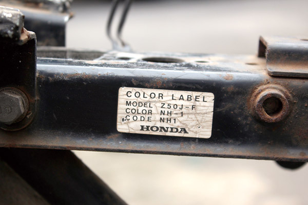 フレーム番号から判断すると1985年製。カラーコードを見てもJFであることが分かるので外装が変更されていた様子もなし。エンジンは2.6PSから3.1PSに切り替わった4速MTのGクランクで6V後期型の初代と判明です