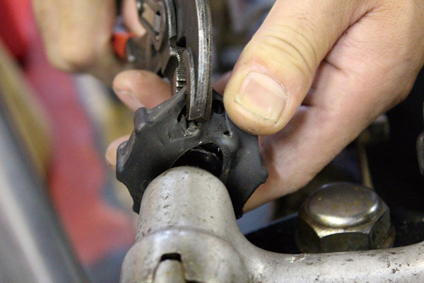ゴムをめくって中身をプライヤーで掴んで 強引に回しました。ピボットシャフトはエ アーインパクトで一撃で回ってくれました