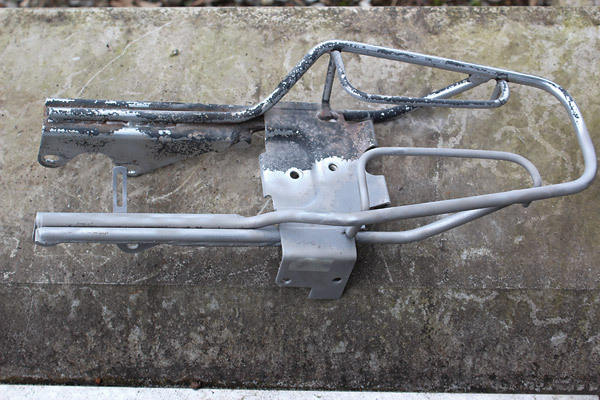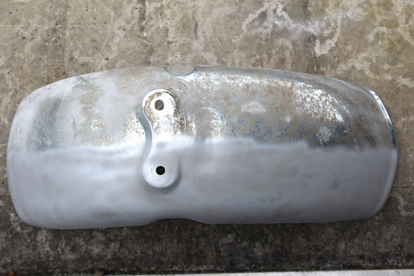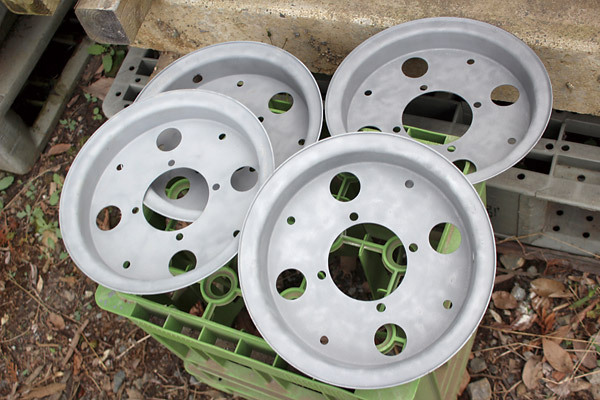 サビて穴が開いていたフロントホイ ールは捨て、中古の純正ホイールを 1輪分のみ入手しておきました。ブ ラスト後は次第にサビてくるので、 早めに塗装をしておきたい!