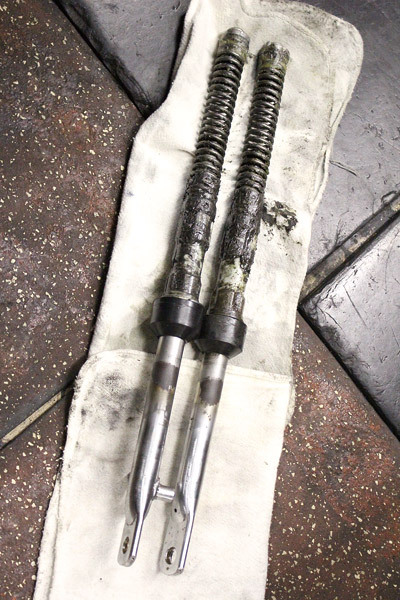 フォークを組もうとしたらインナーチューブが サビサビ。真鍮ブラシぐらいじゃ到底取れない 状態でした。これは流石に使えないな…