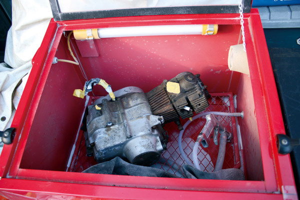 貰ったはいいものの問題はモンキーのエンジンが入るかどうかだったのですが、無事に入りました! ということでバラさずに丸ごとブラストします。