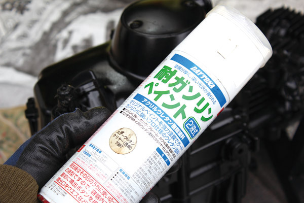 ガソリンで塗料が剥がれてしまうのを防止するために、デイトナ製の耐ガソリンペイントでフィニッシュ