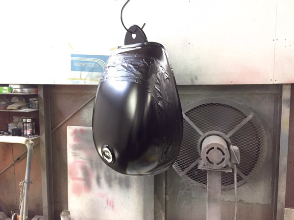 ⑩上から全体に黒を吹きました。もちろんタンクの下側のトンネル部分にも黒を吹いておくのも忘れません!