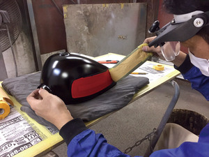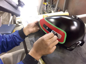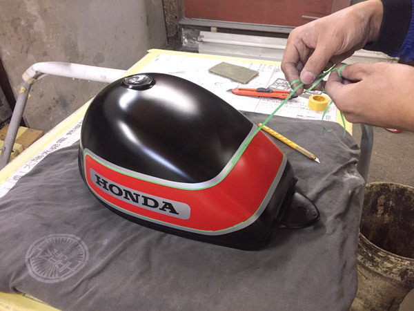 ⑫最初にマスキングした銀ラインのマスキングを剥がして、仕上げとしてクリアを吹いて磨いたら完成です!