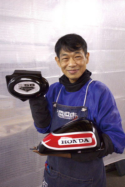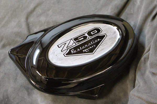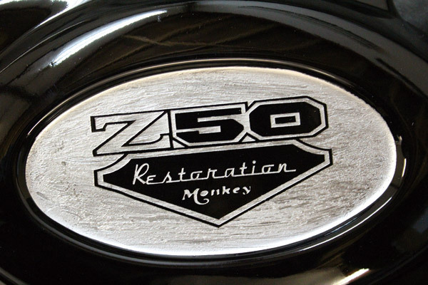 サイドカバーには『Z50レストレーションモンキー』の文字を入れて頂きました。シルバーのペイントはヘアライン仕上げにしたことで、木目の上にメッキを乗せたような不思議な雰囲気に仕上がりました。