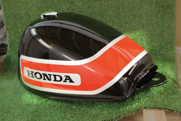 クラシカルなラインのおかげでRSC風を再現。黒×赤の配色によって、なんだかヨシムラカラーのGS750のようでもあり、非常に気に入ってます!