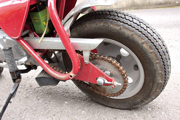 フレームの塗装は部分、部分で剥がれはありますが、クラックは無し。タイヤ・チェーン・バッテリーは当然ながら即交換
