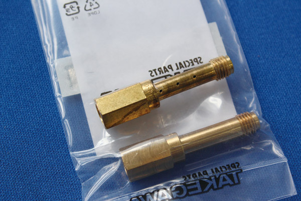 武川製のVMφ26はスロットルホルダーが太いので濃いめのセッティングになっています。つまりジェットニードルの径も太い。キタコ製と武川製のスロットルホルダーやジェットニードルと組み合わせることで、新たなセッティングを作ることも可能になりますね。
