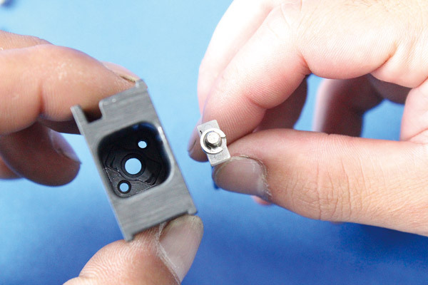 TM-MJNのスロットルバルブはフラットタイプ。PCやVMでは丸い筒だが、薄い板のような形をしています。その分、レスポンスが上がる
