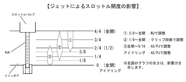 MJNの影響下に関してのグラフがこちら。ちなみにダウンドラフトタイプのYDMJNではエンジンまでの距離がかなり短縮されているためにガソリンを霧化させる時間も短くなるが、その霧化特性をMJNで補っている。