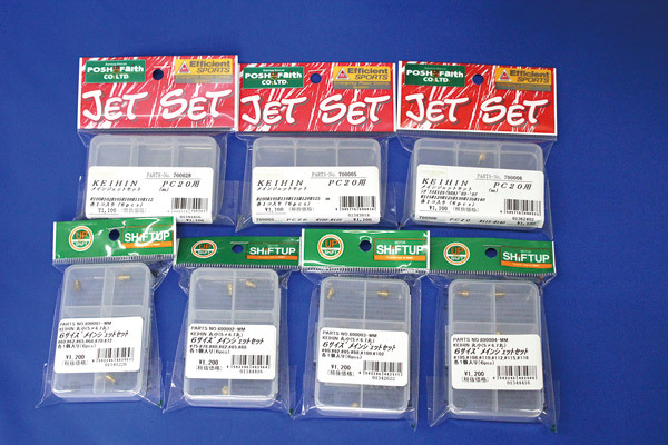 ポッシュフェイスとシフトアップから出ているジェットセットは細かいステージで設定されているのでオススメ。シフトアップ製であれば、一番小さな#60から入っているのはノーマルエンジンや小さいパワーフィルターを付けてる車両に。#75からのセットは88cc以上の夏場用。#90からのセットは88cc以上の冬場用として考えておくと良いでしょう。