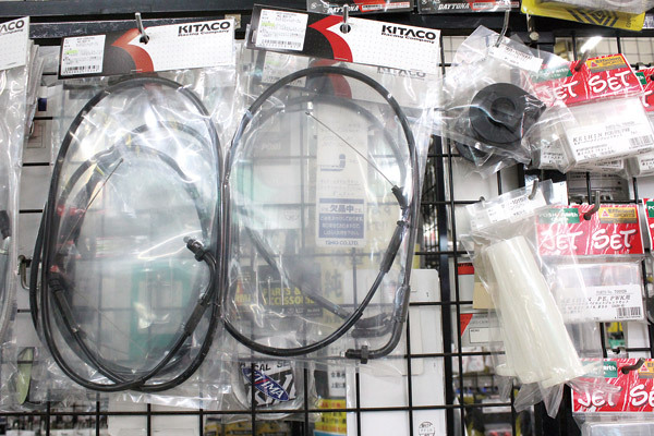 キャブを沢山持っていると、どれがどのワイヤーだったか分からなくなってしまいますよね。ワイヤーのインナーの長さが違うと引き切れなかったりして「もう一回キャブを外してやり直しか…」ということが多々あるのですが、キタコのマルチスロットルケーブルを使えば上下に調整機能が付いているのでインナーの調整幅が広いのです! これは便利!