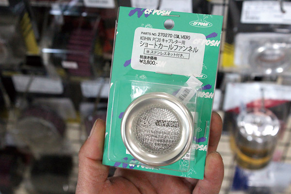 キャブとフレームとの隙間があまりなく「普通のファンネルじゃ入らないよ!」という絶望に答えるような逸品がコチラ。C.F.POSHのショートカールファンネルなら狭い隙間でもファンネルに出来ます。