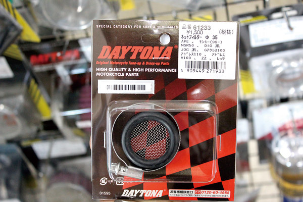 ショートカールファンネルすらも入らない場合でも安心してください。より隙間が少ないスクーター系に主に使用出来るデイトナ製のネットフィルターを使えばイケるでしょう!