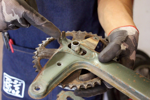 フレームにマウントしているピポットシャフトはスイングアームに付属している薄型ナットに変更します。