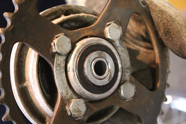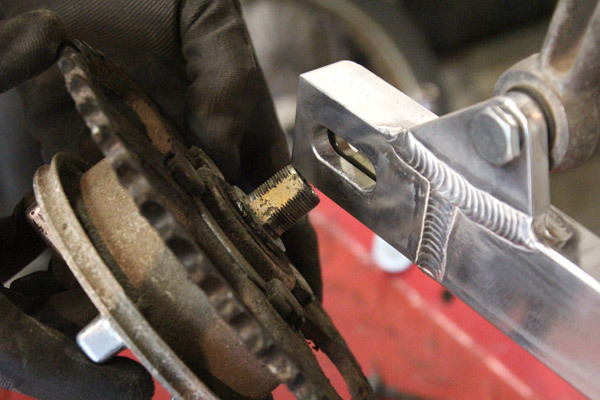 まずは純正ホイールとスイングアームを外します。ロングスイングアームなるのでチェーンも外しておきます。