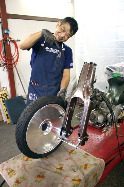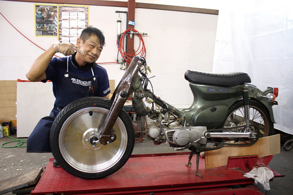 ドノーマルのカモメカブをベースにGM-MOTO製パーツを使ってフルカスタム。今回はワイドなフロントフォーク&極太ディッシュホイールに変更してみます! どんなマシンに仕上がるかお楽しみに~!