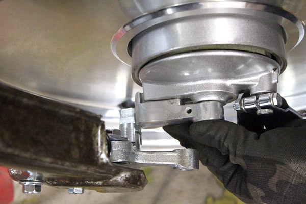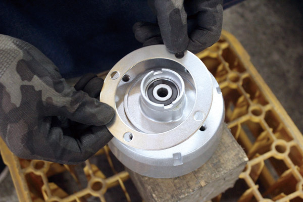 ディッシュホイールにハブを組み込む時にはマウントボルトにネジロックを使用して緩み止めをしておきます。締める時はトルクレンチを使ってキチンとトルクも図りましょう。