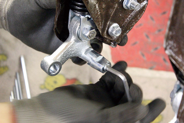 ワイドフォークに付属していたブレーキパネルの回り止めはデッシュホイールの場合には使わないので取り外し、デッシュホイールに付属している回り止めを使います。