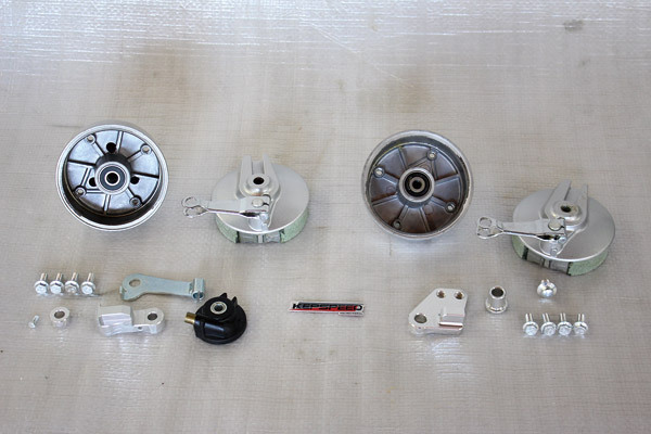 前後のハブはモンキーと同じ形状のものが付属。メーターギアやブレーキパッドも付いていますが、これらもモンキー用と同じ形状。