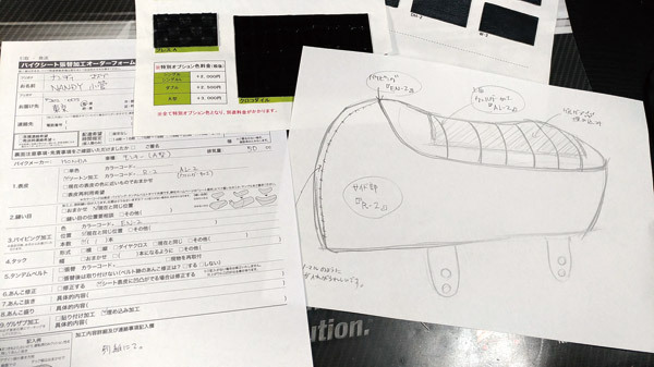 太洋モータースさんである程度組み込んだ状態から216motoringさん へ。そして丸直さんに張り替えを出したスペシャルシートも出来上がってきました!!