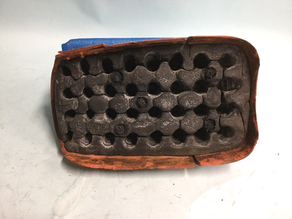 これがA型シートの表皮を取り外した状態。表面側の赤茶 色のスポンジとその下の黒いスポンジの二重構造になって いるのです