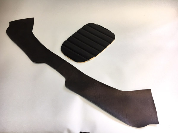 純正同様に後部に縫い合わせを入れてもらいたかったので、 このような形状となりました。合わせ面には純正同様にパ イピングも入ります