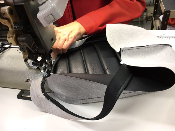 裁断したパーツを縫製していきます。使用されるミシンは 分厚いシート表皮でも縫える特注品です! みるみる形にな っていき、技術力の高さが伺えます!