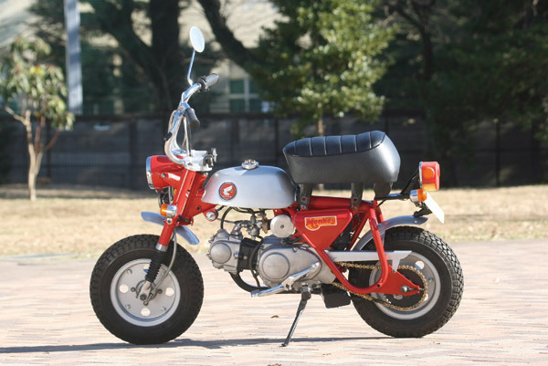 車体のバラしから組み上げは太洋モータースさんで。エンジンは排気量の変更はしませんでしたが、全バラしあかおぎさんの高い技術で組み直し。内海工業さんでは全ての鉄パーツにサンドブラストを、そしてアルミパーツにはウエットブラストを施しました。塗装は全てパウダーコート仕上げで、シリンダーにはガンコートを二十世紀屋さんでかけました。組み上げ時には電装で行き詰まってしまいましたが、そこは多くの連載でもお世話になっている216モトリングの小林さんにより原因も究明。最後の仕上げとなるシートは丸直さんにお願いしました。いつも助けて頂いている各ショップさんのおかげで、ようやくA型モンキーもここに大完成。応援して頂いた読者の皆様もありがとうございました!!